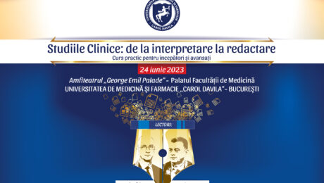 Universitatea de Medicină și Farmacie “Carol Davila” din București are plăcerea de a vă invita să participați sâmbătă, 24 Iunie, începând cu ora 09:30, la cursul STUDIILE CLINICE: DE LA