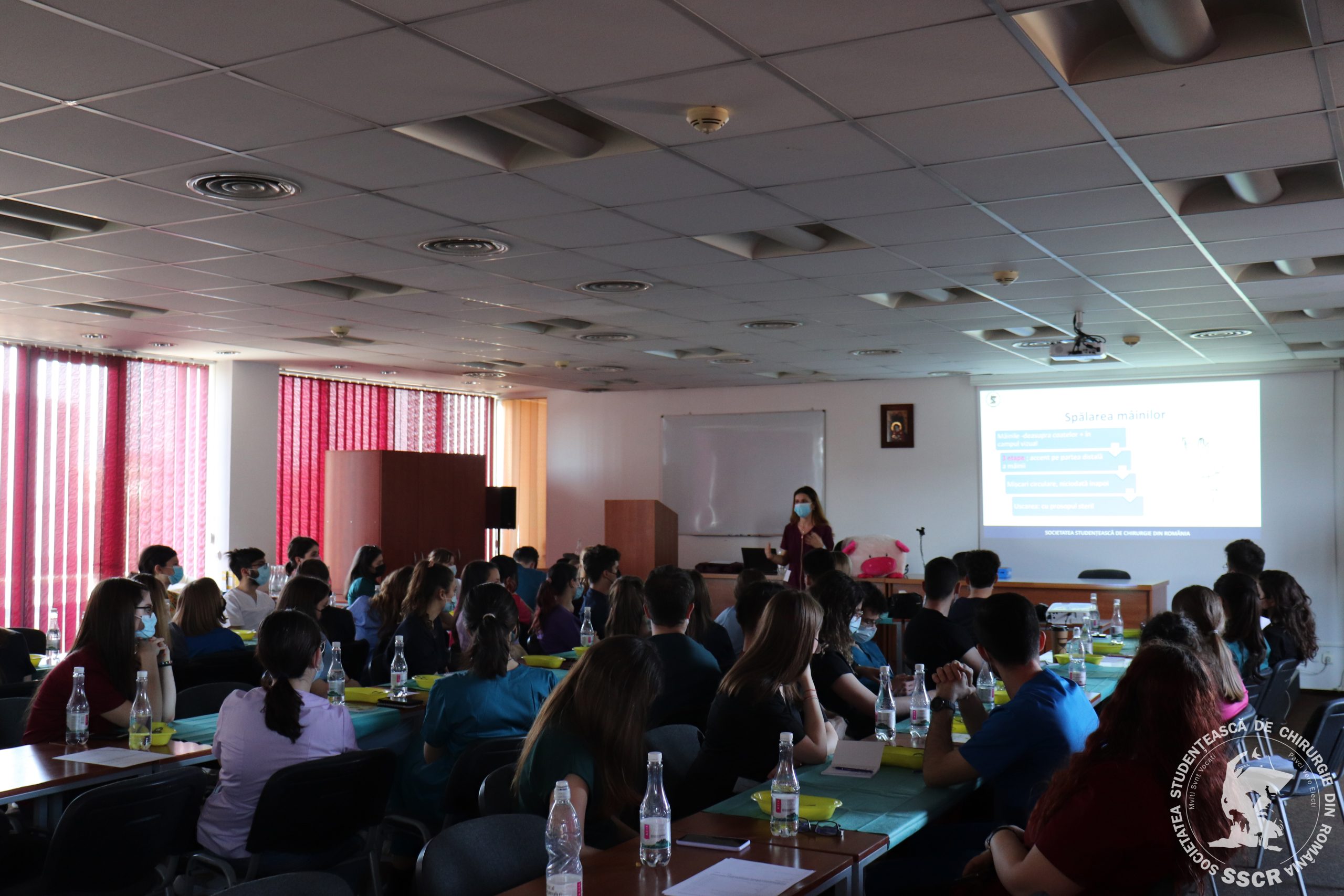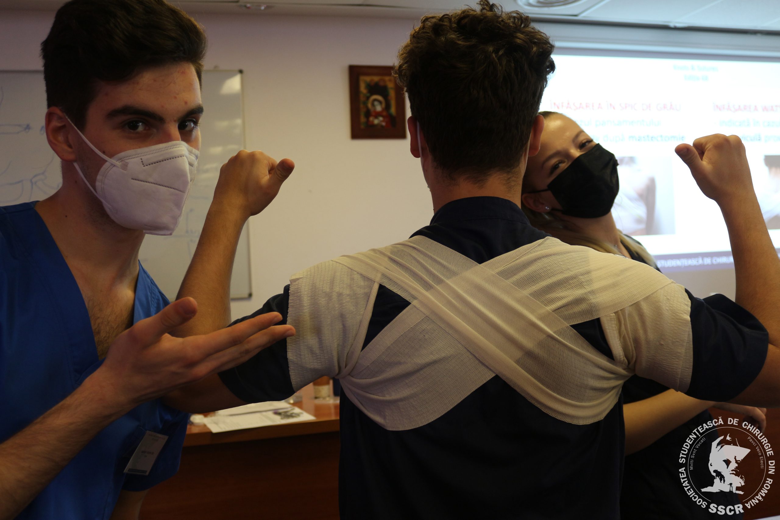 În cadrul acestui workshop, participanții au avut ocazia de a descoperi noțiuni chirurgicale de bază și au fost abordate teme precum: noduri și suturi chirurgicale, instrumentar specific, asepsie și antisepsie, pansamente și bandaje, managementul plăgii. 🩹