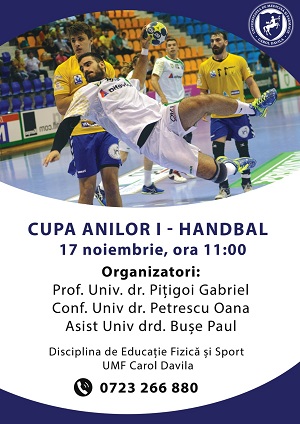 , prin Direcția Antreprenoriat Studențesc, Alumni, Activități Studențești, Proiecte și Programe, organizează competiția de handbal „Cupa Anilor I”, în data de 17 Noiembrie, ora 11