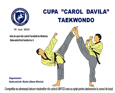 În data de 19 Mai 2023, Disciplina de Educație Fizică și Sport din cadrul Universității de Medicină și Farmacie „Carol Davila” din București organizează Cupa „Carol Davila” la Taekwondo.