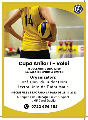 Vineri, 8 decembrie 2023, începând cu ora 12.00, Universitatea de Medicină și Farmacie „Carol Davila” din București organizează „Cupa Anilor I” la volei