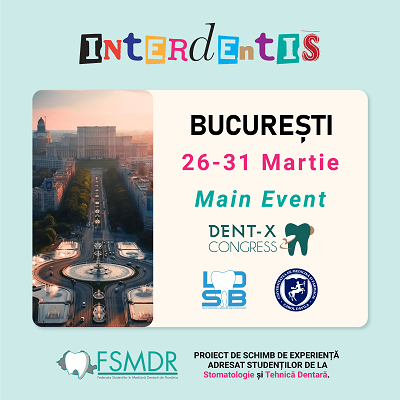 InterDentis este un proiect organizat de Liga Studenților la Medicină Dentară București, cu sprijinul Universității de Medicină și Farmacie “Carol Davila” din București, prin Direcția Antreprenoriat Studențesc, Alumni, Activități Studențești, Proiecte și Programe, ce se va desfășura în perioada 26-31 Martie 2023.