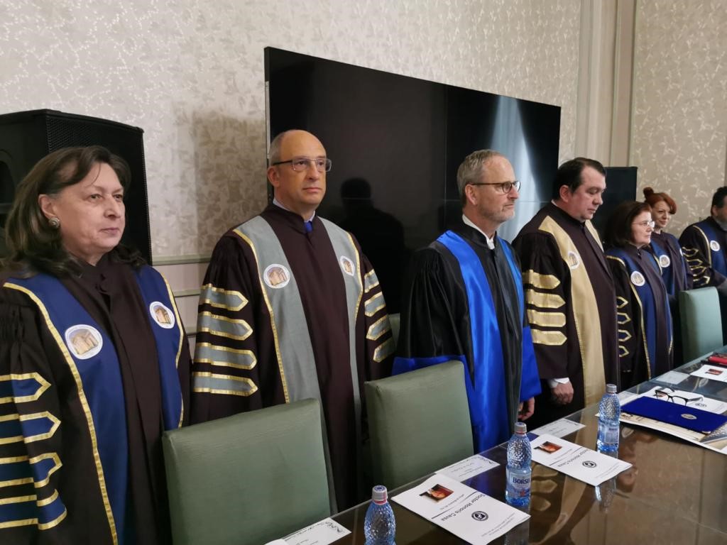În cuvinte pline de căldură şi prietenie, Rectorul Universităţii, Prof. Univ. Dr. Viorel Jinga, şi Preşedintele Senatului Universitar, Prof. Univ. Dr. Dragoş Vinereanu, au reliefat atât personalitatea complexă a distinsului oaspete, cât şi bucuria de a avea în corpul academic al Universităţii noastre un nou coleg de largă recunoaştere internaţională.