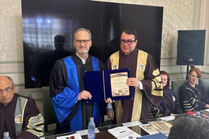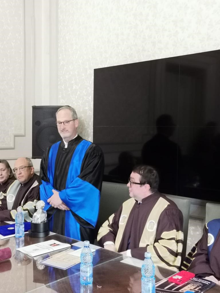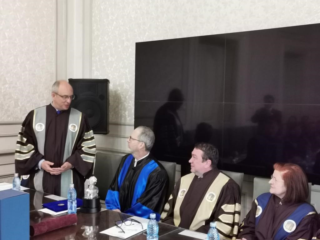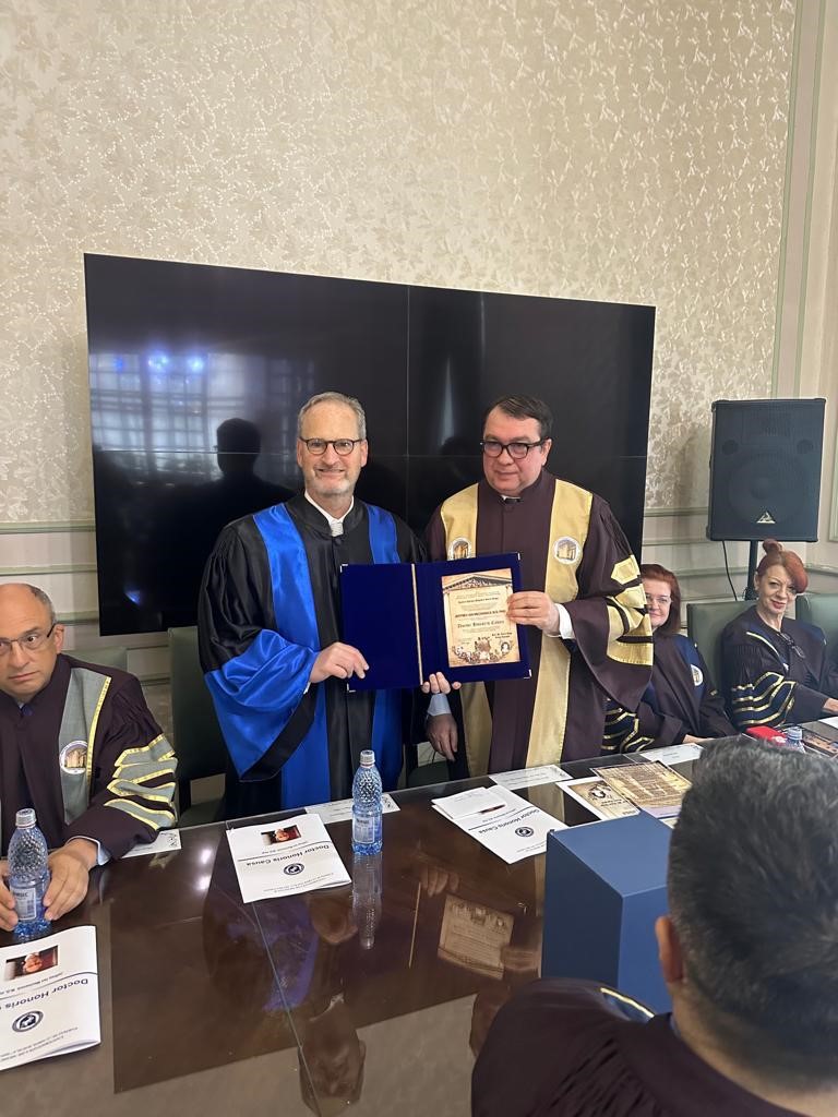 Ieri, 1 Martie 2023, în prezenţa Rectorului Universităţii, Prof. Univ. Dr. Viorel Jinga, a Preşedintelui Senatului Universitar, Prof. Univ. Dr. Dragoş Vinereanu, a Conducerii Universităţii şi a invitaţilor, a avut loc ceremonia de acordare a Titlului ,,Doctor Honoris Causa” Dlui Prof. Univ. Dr. JEFFREY IAN MECHANICK, care s-a desfăşurat la sediul Rectoratului Universităţii noastre.