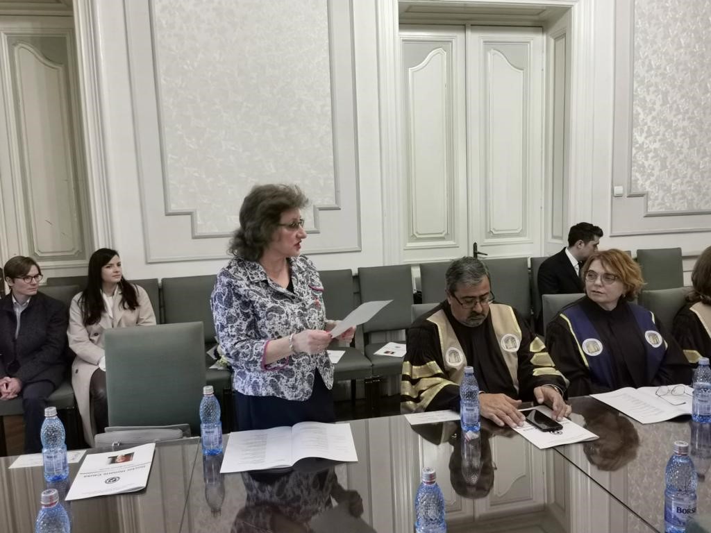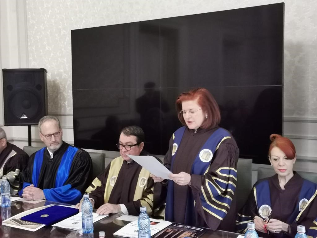 Activitatea remarcabilă a distinsului Prof. Univ. Dr. Jeffrey Ian Mechanick a fost prezentată detaliat într-un amplu ,,Laudatio” de către Dna. Prorector Prof. Univ. Dr. Cătălina Poiană.