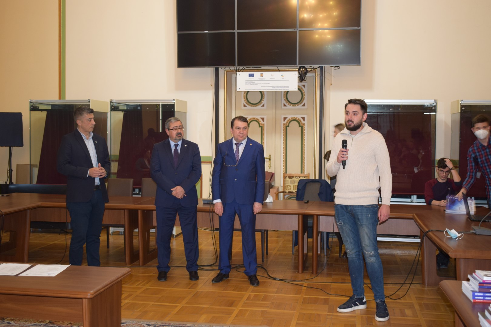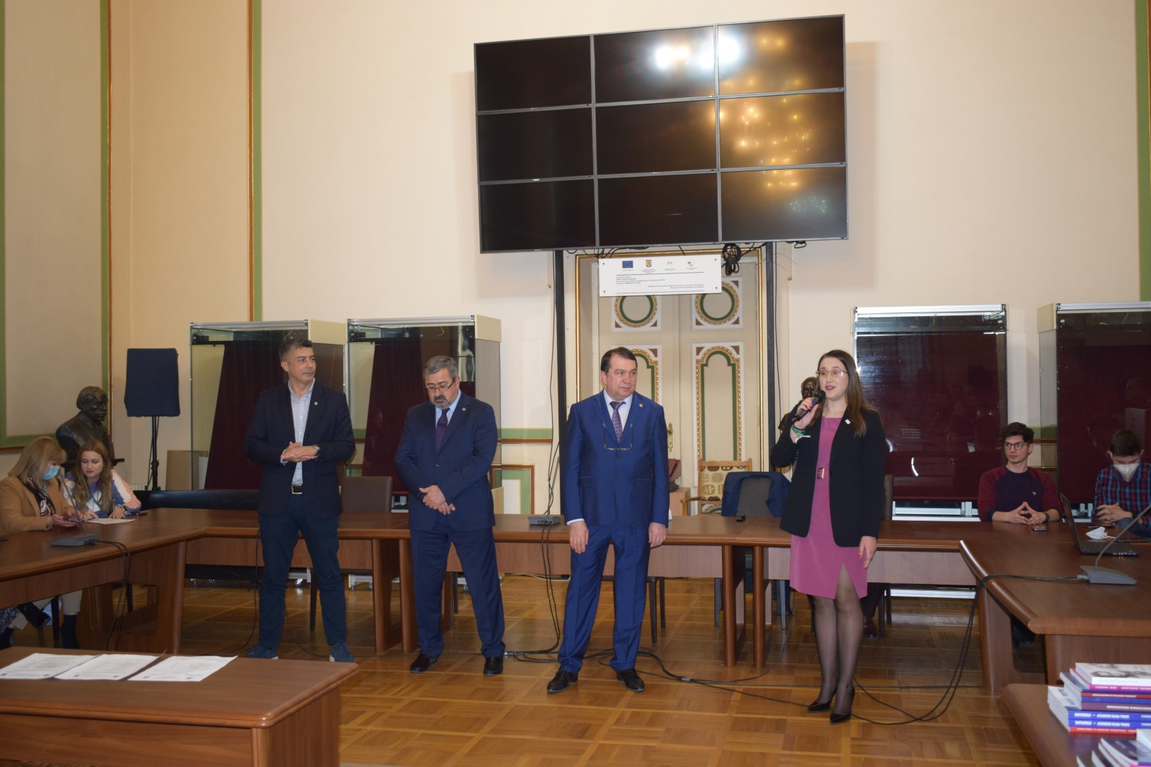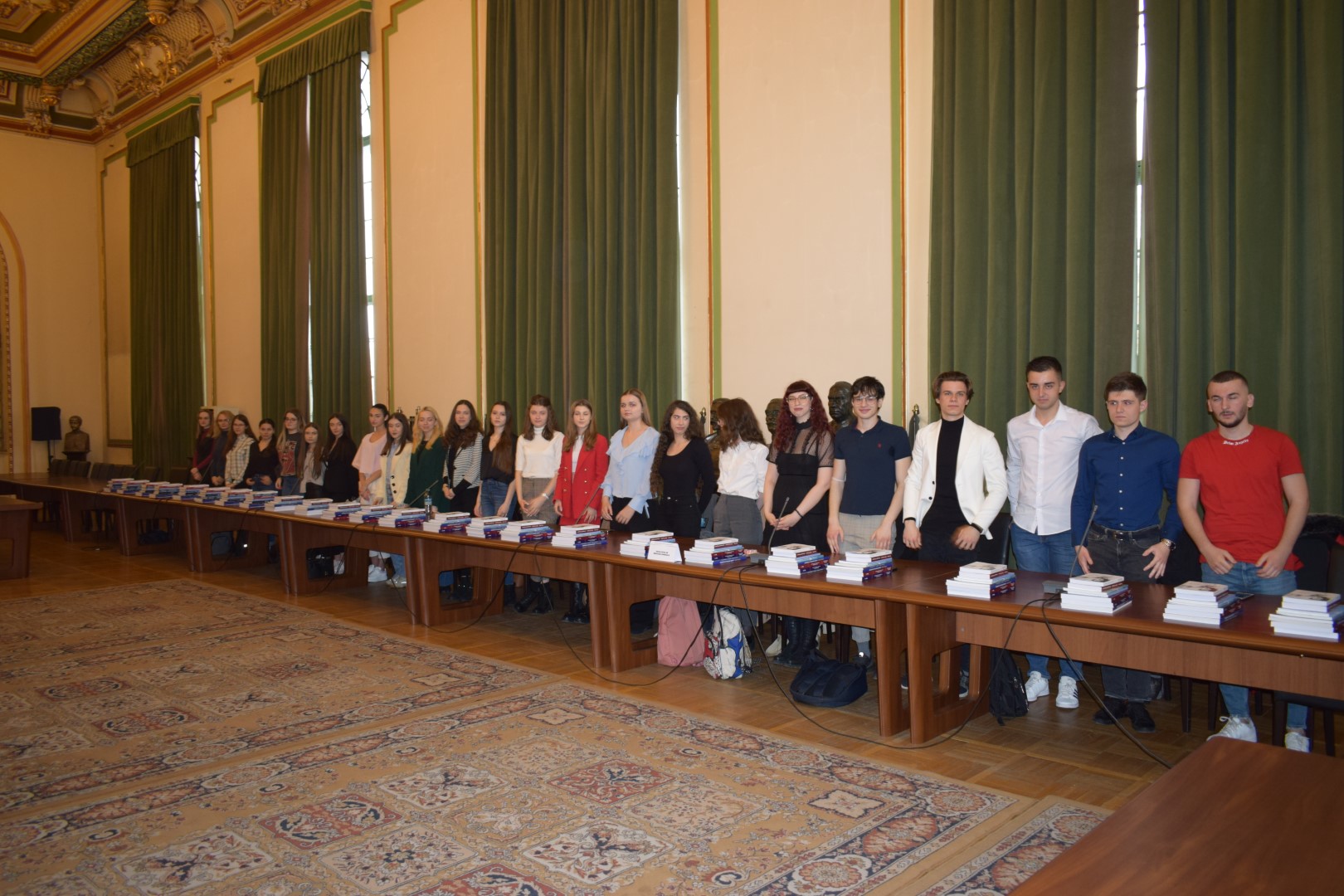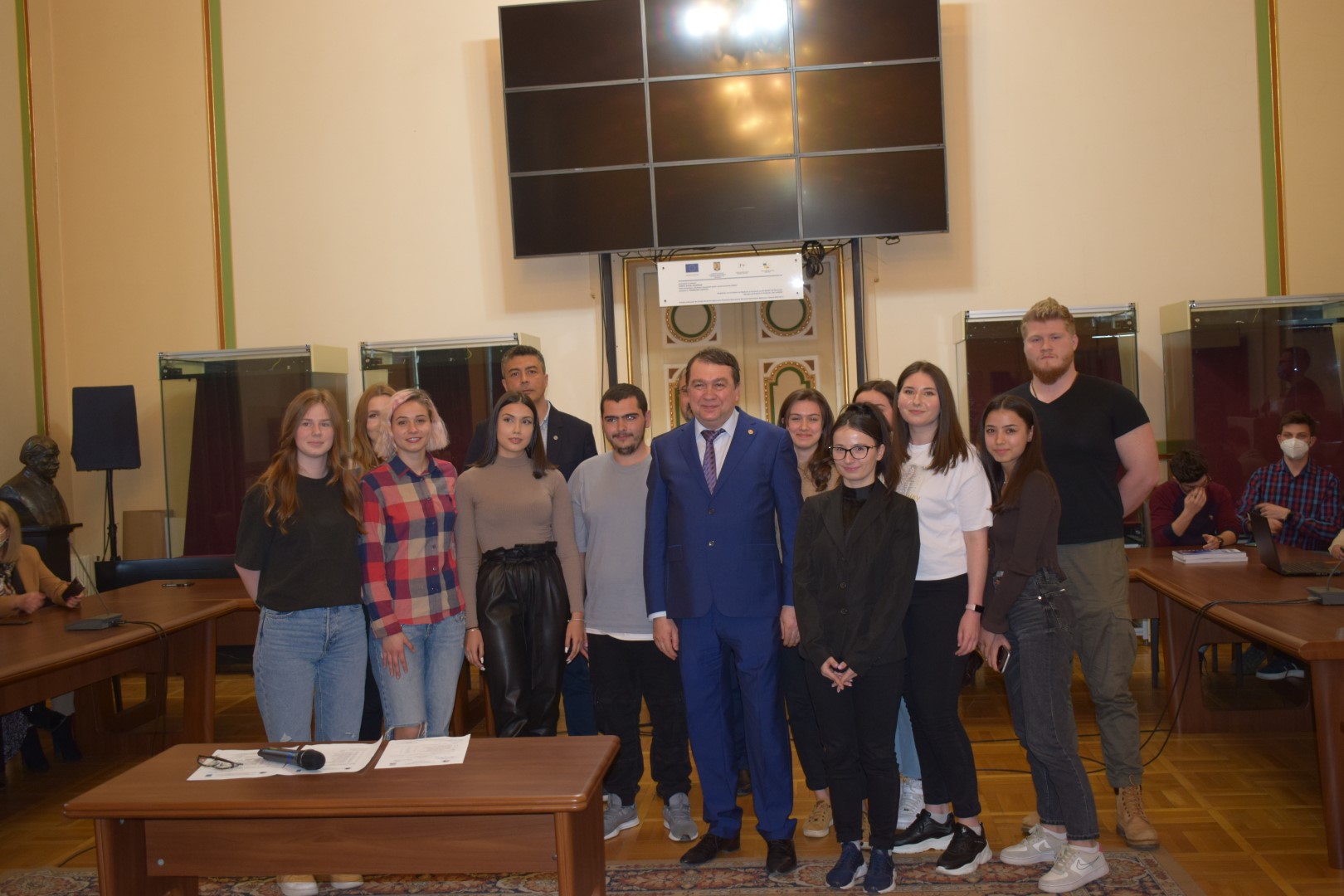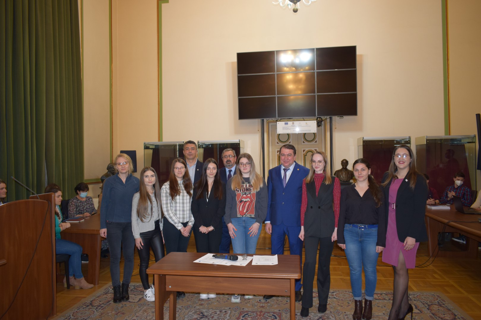 În admirabila Sală de Consiliu a Palatului Facultăţii de Medicină, a avut loc ieri 4.04.2022, în prezenţa Rectorului Universităţii Prof. Univ. Dr. Viorel Jinga, a Prorectorului cu probleme studenţeşti Prof. Univ. Dr. Silviu Piţuru, a Preşedintelui Comisiei Senatului Universitar pentru probleme studenţeşti Prof. Univ. Dr. Victor Lorin Purcărea, a Decanului F.M.A.M. Prof. Univ. Dr. Victor Strâmbu, a Conducerii Executive a studenţilor din Universitate şi a reprezentantului prorectoratului cu probleme studenţeşti şi a Comisiilor de Acordare, acordarea Burselor Speciale ,,Prof. Univ. Dr. Theodor Burghele”.
