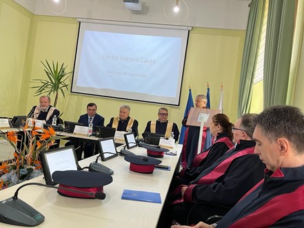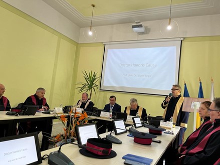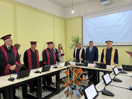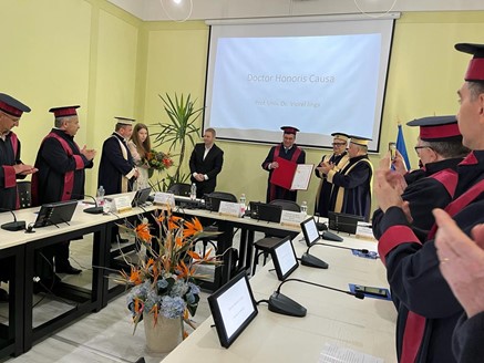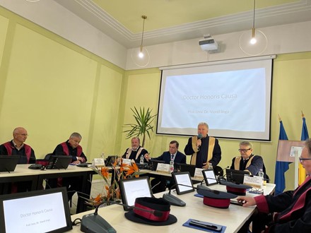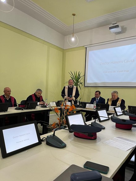 Vineri, 19.05.2023, în cadrul unei ceremonii emoţionante şi impresionante prin derulare şi participare, Rectorul nostru, Prof. Univ. Dr. Viorel Jinga, a devenit Doctor Honoris Causa, cea mai înaltă distincţie a Universităţii din Oradea.