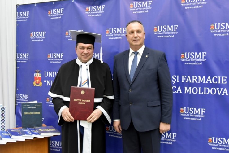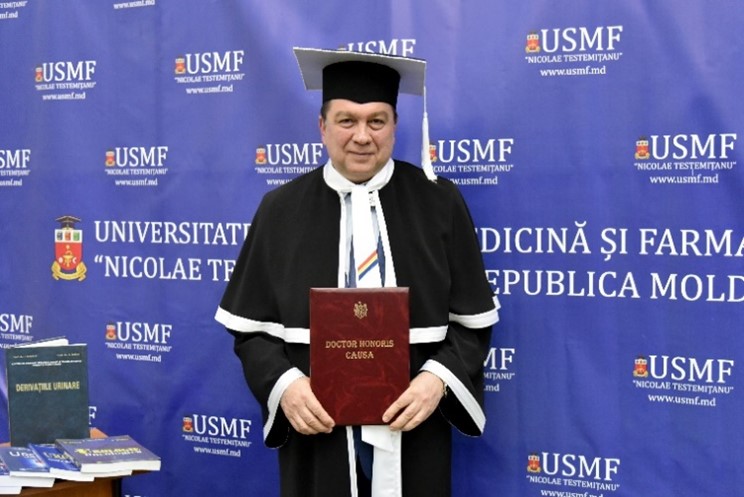 La sfârşitul săptămânii trecute, Universitatea de Stat de Medicină şi Farmacie ,,Nicolae Testemiţanu” din Chişinău, în prezenţa Senatului Universitar şi a numeroşi medici urologi şi nefrologi din Republica Moldova a acordat înaltul titlu de Doctor Honoris Causa Domnului Prof. Univ. Dr. Viorel Jinga, Rectorul Universităţii de Medicină şi Farmacie ,,Carol Davila”.