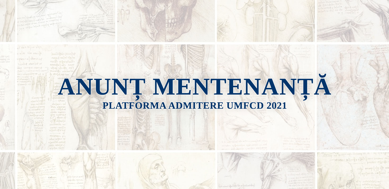 Vă informăm că aplicația online https://adm.old.umfcd.ro va intra în mentenanță în data de 07.07.2021 în intervalul orar 07:30 – 08:30.