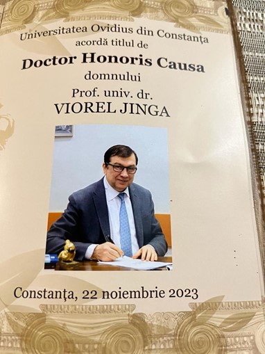 Miercuri, 22 noiembrie 2023, a avut loc, la Universitatea Ovidius din Constanţa, ceremonia de acordare a titlului de DOCTOR HONORIS CAUSA, cea mai mare distincţie a Universităţii, ce se poate acorda numai personalităţilor de excepţie din afara Universităţii.