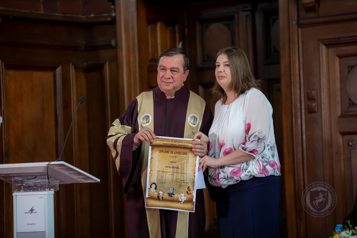 Rectorul Universităţii de Medicină şi Farmacie ,,Carol Davila”, Prof. Univ. Dr. Viorel Jinga, a oferit vorbitorilor diplome şi distincţii, în semn de prietenie, admiraţie şi mulţumire pentru eforturile extraordinare depuse, care au făcut posibile, într-un timp atât de scurt, reuşitele universitare de astăzi.