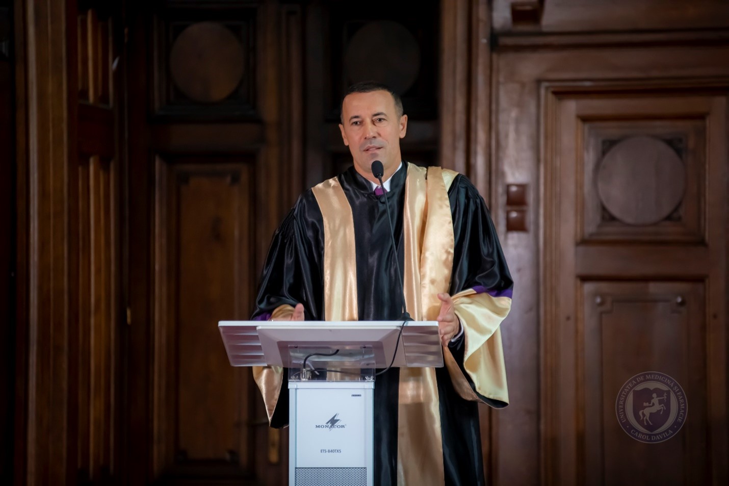 În cuvinte pline de căldură, Rectorul Universităţii de Medicină şi Farmacie ,,Carol Davila”, Prof. Univ. Dr. Viorel Jinga, s-a adresat noilor ,,boboci”, felicitându-i pentru reuşita la examenul de admitere, deloc uşor, pentru şansa la o nouă viaţă profesională de o mare utilitate, dar şi de o mare satisfacţie sufletească, pe aceste meleaguri, care au dat atâtea mari personalităţi României, în atât de diferite domenii de manifestare, precum medicină, poezie, teatru, etc. Cu aceeaşi căldură, s-au adresat sălii arhipline de studenţi, părinţi şi numeroşi participanţi, dna Prof. Univ. Dr. Ecaterina Ionescu şi dl Prof. Univ. Dr. Silviu Mirel Piţuru, Prorectori ai Universităţii de Medicină şi Farmacie ,,Carol Davila”, cât şi dl Prof. Univ. Dr. Victor Strâmbu, Decanul Facultăţii de Moaşe şi Asistenţă Medicală.