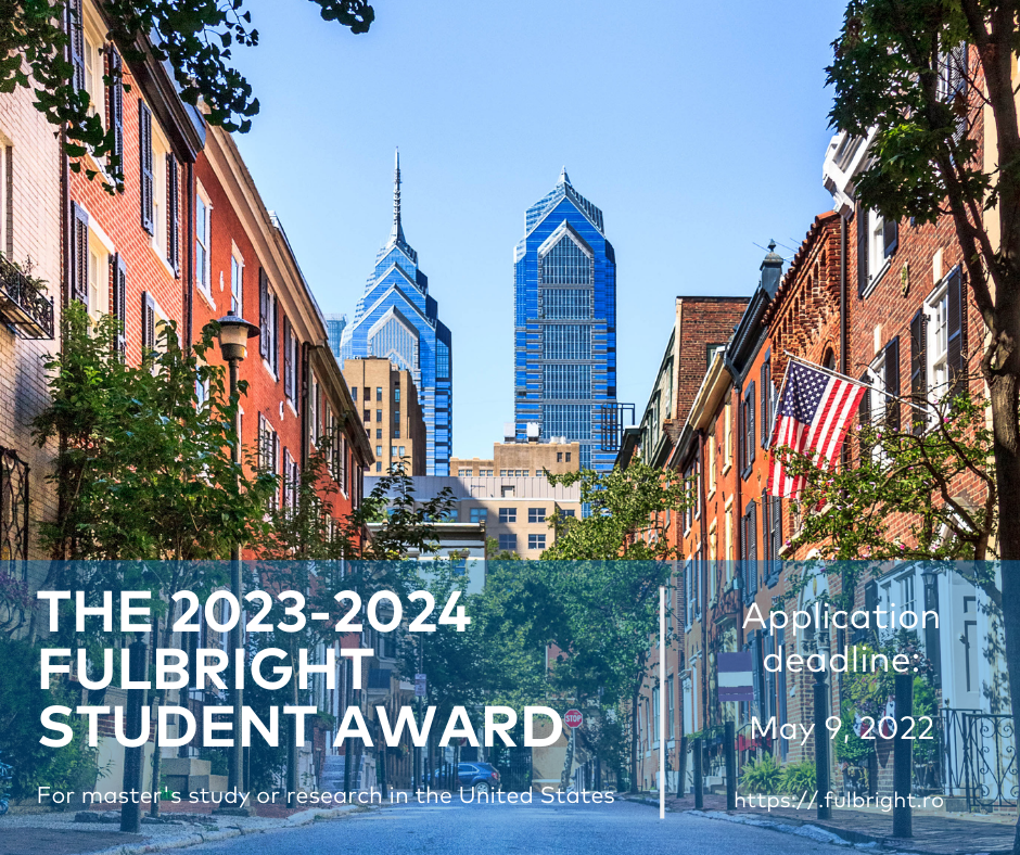 Apelul Fulbright Student Awards este adresat studenților din anul final de studii de licență, absolvenților și doctoranzilor în vederea desfășurării de studii de masterat sau stagii de cercetare la universități americane, în orice disciplină (cu excepția disciplinelor clinice), în anul academic 2023-2024.