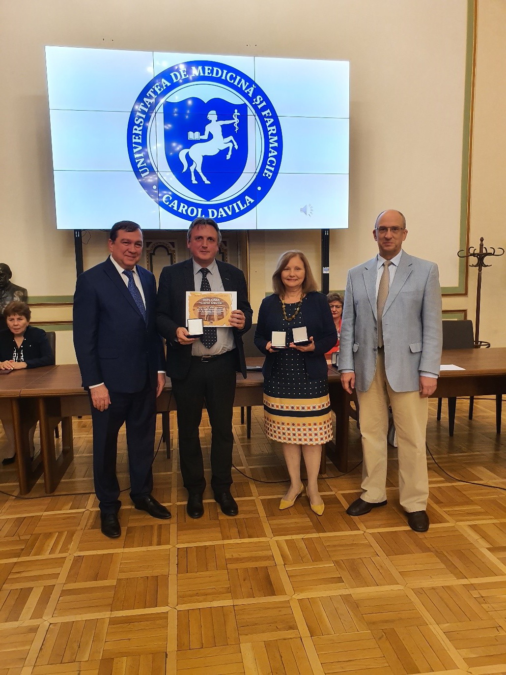 Au fost acordate Diplome ,,Carol Davila” şi Medalii ,,Carol Davila” dlui. Dr. Cornelius Dragomir şi dnei Dr. Crenguţa Sorina Şerboiu şi dlui Dr. Med. Alin Gabriel Dragomir pentru cartea cu titlul ,,Patologie digestivă superioară. Ghid clinico-terapeutic”, dnei Asist. Univ. Dr. Oana Cristina Voinea pentru ,,Ghid introductiv în sindromul Lynch pentru pacienţi” şi ,,Ghid introductiv în sindromul Lynch pentru medici”, dlui Conf. Univ. Dr. Ovidiu Popa-Velea, dnei Şef Lcr. Dr. Liliana Veronica Diaconescu şi dnei Şef Lcr. Dr. Alexandra Ioana Mihăilescu pentru cartea cu titlul ,,Comunicare. Comunicare medicală”, precum şi dlui Conf. Univ. Dr. Ovidiu Popa-Velea pentru cartea intitulată ,,Sociologie. Sociologie medicală”.