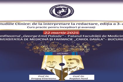 📌Cursul se va desfășura în Amfiteatrul “George Emil Palade” – Palatul Facultății de Medicină (UNIVERSITATEA DE MEDICINĂ ȘI FARMACIE “CAROL DAVILA” DIN BUCUREȘTI).