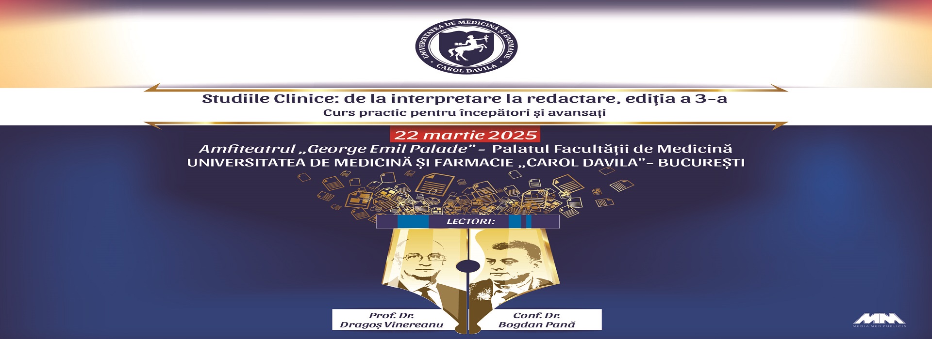 Universitatea de Medicină și Farmacie “Carol Davila” din București are plăcerea de a vă invita să participați sâmbătă, 22 martie, începând cu ora 09:00, la cursul: