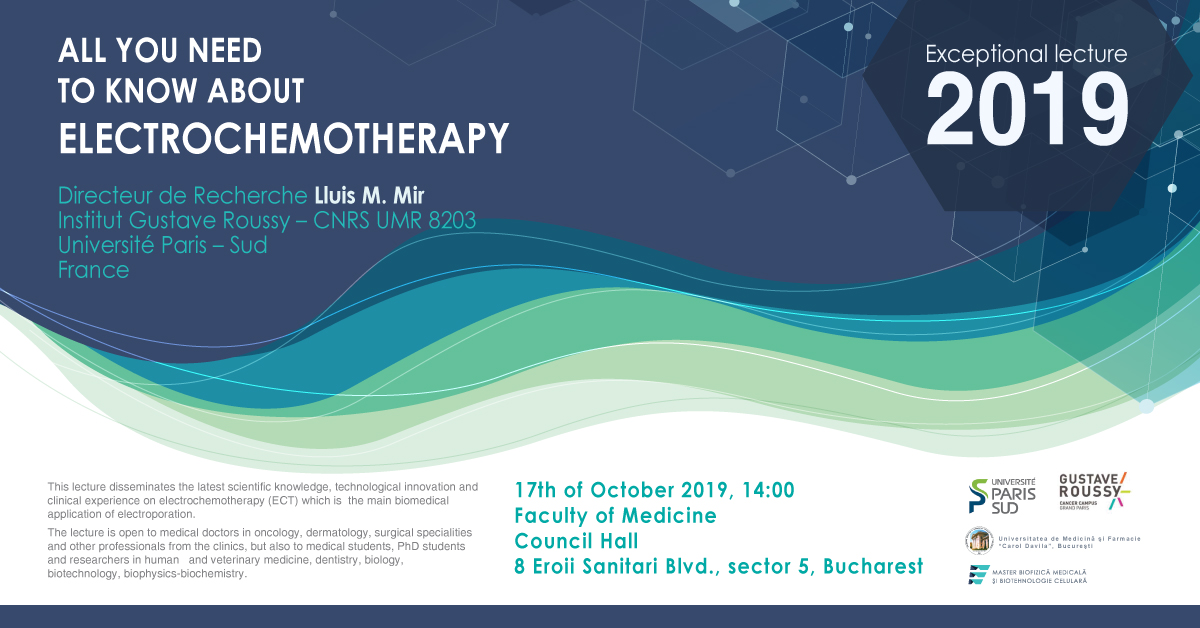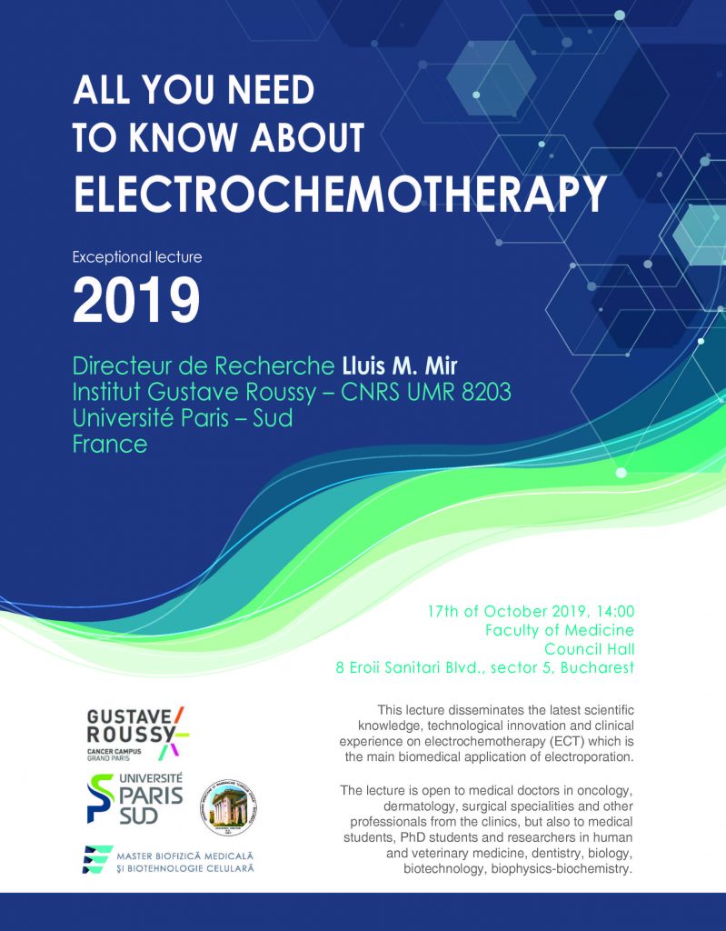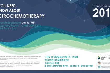 Joi 17.10.2019, ora 14:00, în Sala de Consiliu a Facultății de Medicină, va avea loc prelegerea “All you need to know about electrochemotherapy” susținută de Prof. Lluis M. Mir, Université Paris – Sud, Institutul Gustave Roussy, Franța.