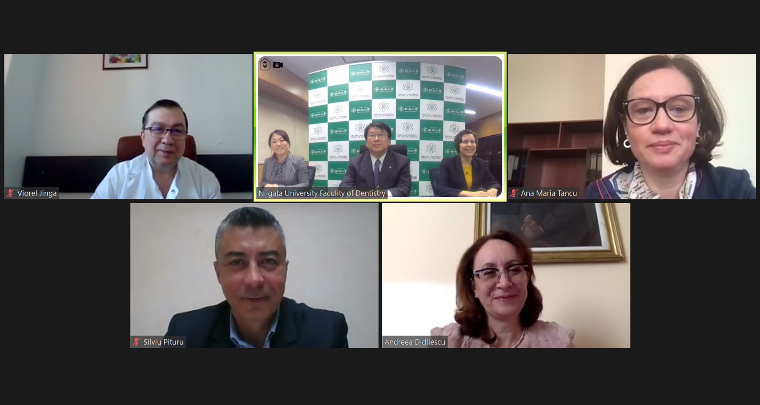 În data de 25 Ianuarie 2022 a avut loc ceremonia online de semnare a acordului de extindere a colaborării între Faculty of Dentistry, Niigata University și Facultatea de Medicină Dentară, UMF “Carol Davila”, București. Ceremonia a fost deschisă de Domnul Rector, Prof. Univ. Dr. Viorel Jinga, urmat de cuvăntul de salut al Decanului Facultății din Niigata, Prof. Univ. Dr. Takeyasu Maeda, și al Decanului Facultății din București, Prof. Univ. Dr. Andreea Didilescu. După semnarea acordului, remarcile de închidere au fost rostite de Prof. Asociat Dr. Roxana Stegăroiu (Persoana de contact) și Prof. Univ. Dr. Miho Terunuma (Prodecanul pentru relațiile internaționale) de la Universitatea din Niigata, respectiv Prof. Univ. Dr. Silviu Pițuru (Prorectorul pentru relațiile cu studenții) și Conf. Univ. Dr. Ana-Maria Țâncu (Prodecanul pentru relațiile internaționale) din partea UMF “Carol Davila”.
