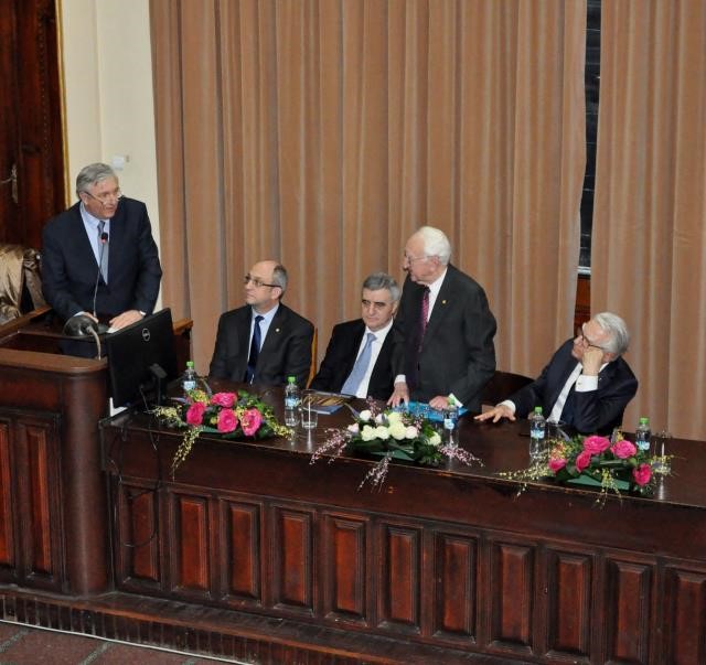 În deschiderea emoționantei ceremonii Rectorul Universității, Dl Academician Ioanel Sinescu a prezentat un foarte bine documentat parcurs evolutiv al sărbătoritului reliefandu-i valoarea și irepetabilitatea.