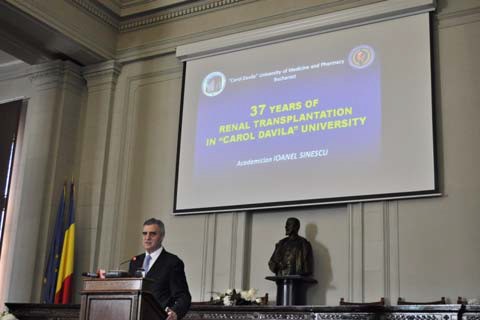 În Aula Academiei Române a avut loc ieri, 28.06.2017 un excepțional eveniment de valoare științifică, înaltă ținută academică și recunoaștere valorică, Simpozionul: “37 de ani de transplant renal în UMF”Carol Davila”.