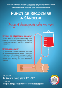 Pentru mai multe informații sau pentru a face o programare, contactati: donare.sange@upb.ro.
