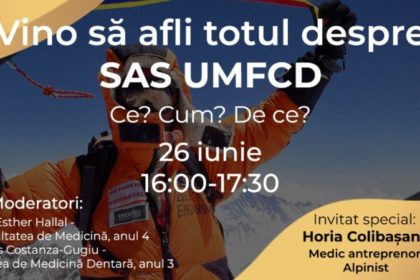 Moderatorii evenimentului vor fi Esther Hallal, studentă în anul 4 la Facultatea de Medicină și Flavius Costanza-Gugiu, student în anul 3 la Facultatea de Medicină Dentară. Cei 2 fac parte din echipa inovatoare și creativă a SAS-UMFCD.