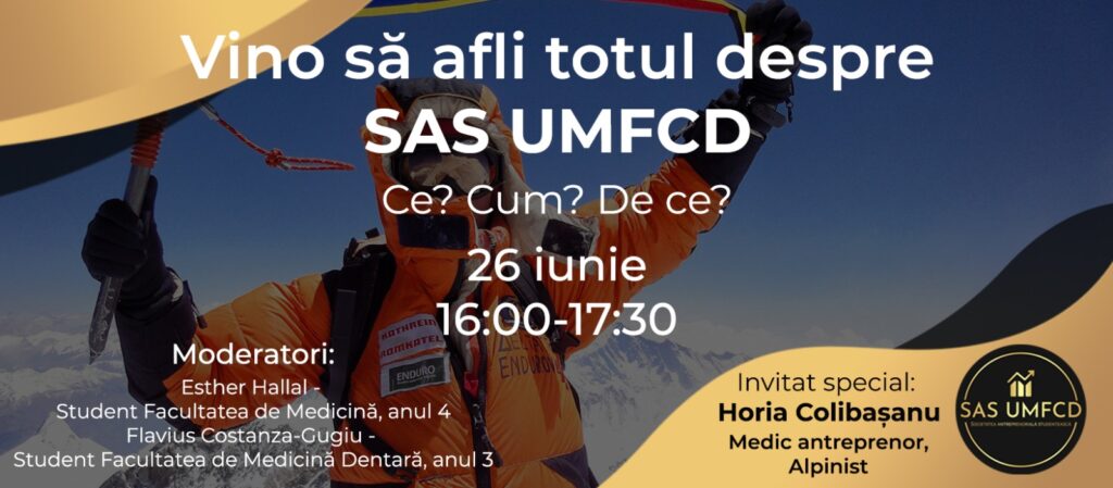 Avem plăcerea de a vă invita la webinarul de prezentare a activităților Societății Antreprenoriale Studențești – UMFCD (https://sas.old.umfcd.ro/) pentru anul 2020.