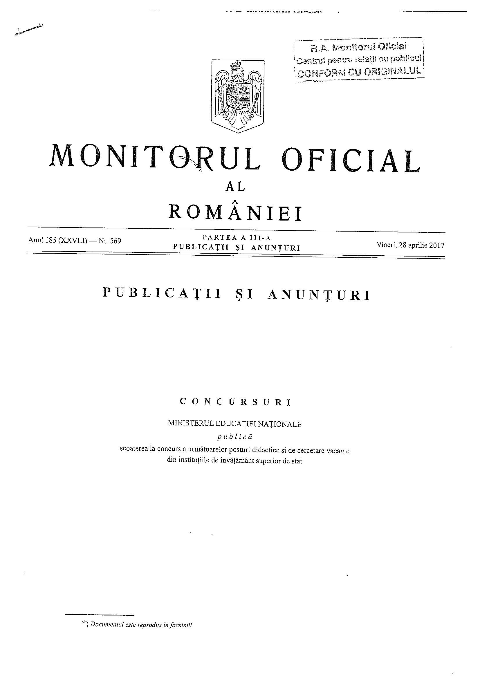 • CONCURS POSTURI – MONITORUL OFICIAL Semestrul II, 2016-2017