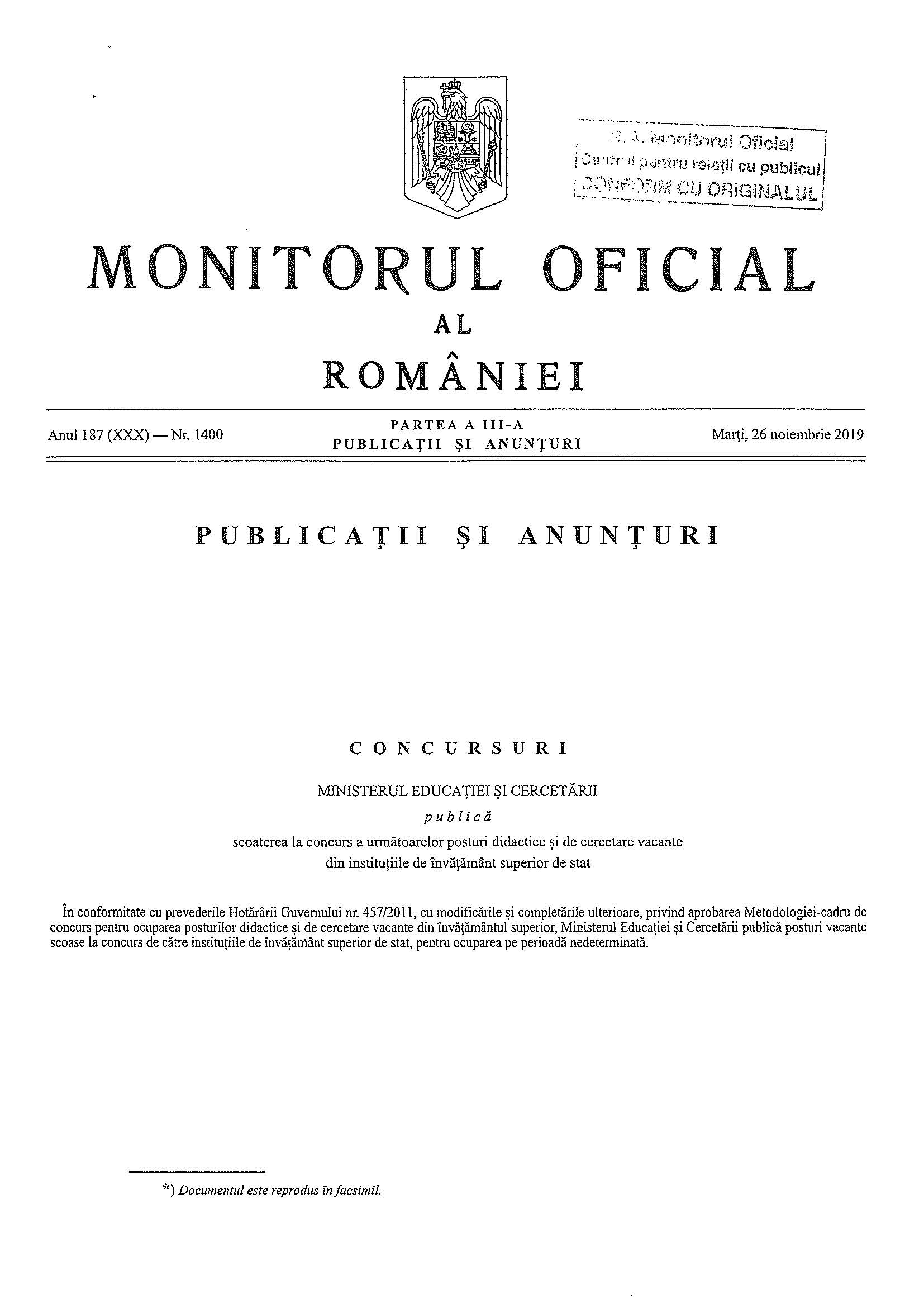 - Monitor Oficial – Posturi concursuri cadre didactice